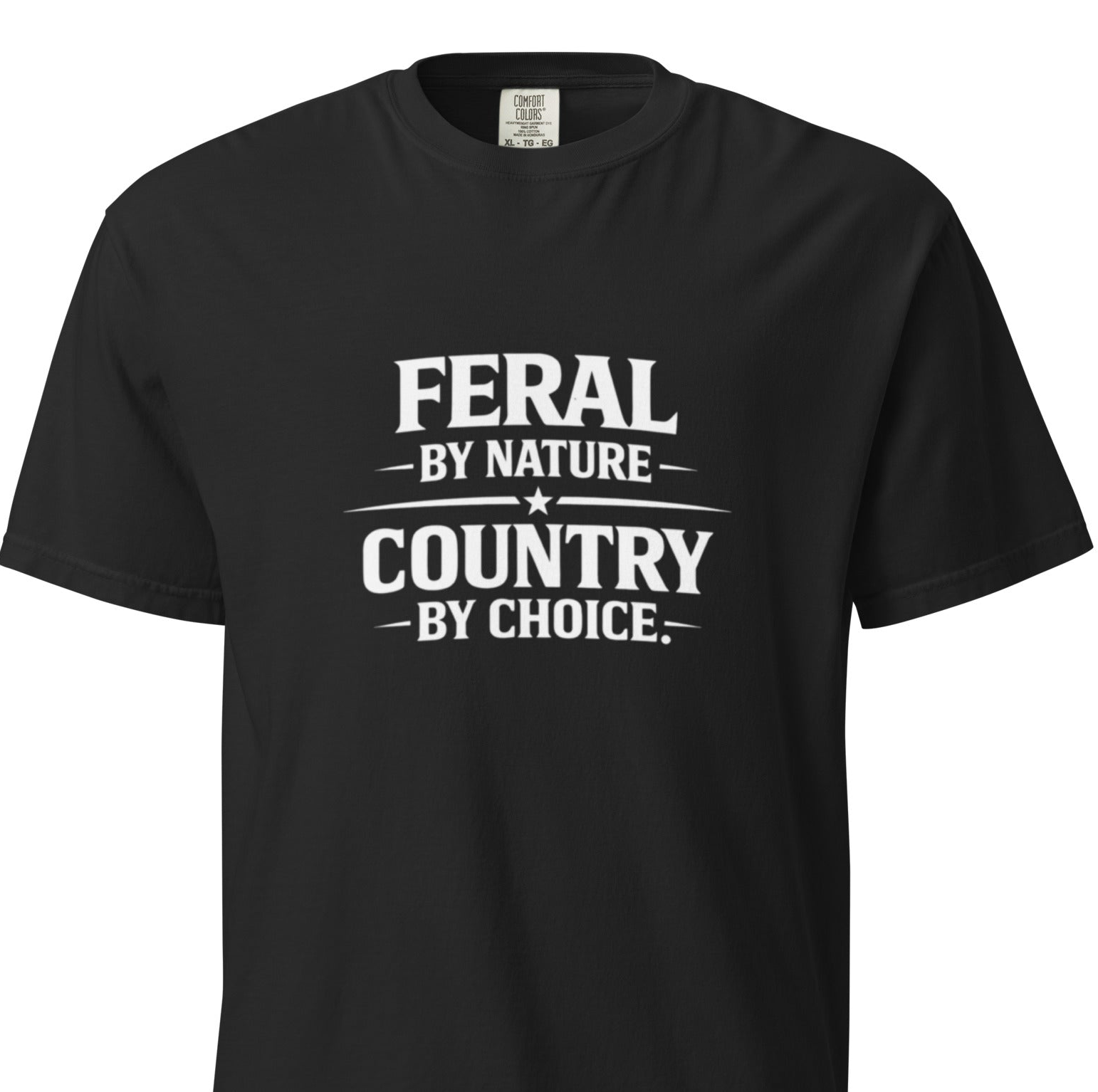 The Feral by Nature, Country by Choice t-shirt is for the ones who feel more at home on dirt roads than city streets. Built for long days outside, late nights around a fire, and anyone who prefers the sound of gravel under tires over traffic noise.