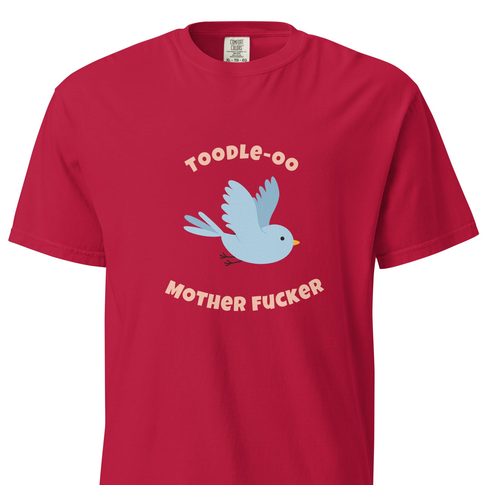 The “Toodle-Oo Mother F*cker” tee is for the ones who don’t storm out — they exit with style. Featuring a deceptively cute bird and a farewell that hits a little harder than expected, this design lives comfortably in the Unhinged category.